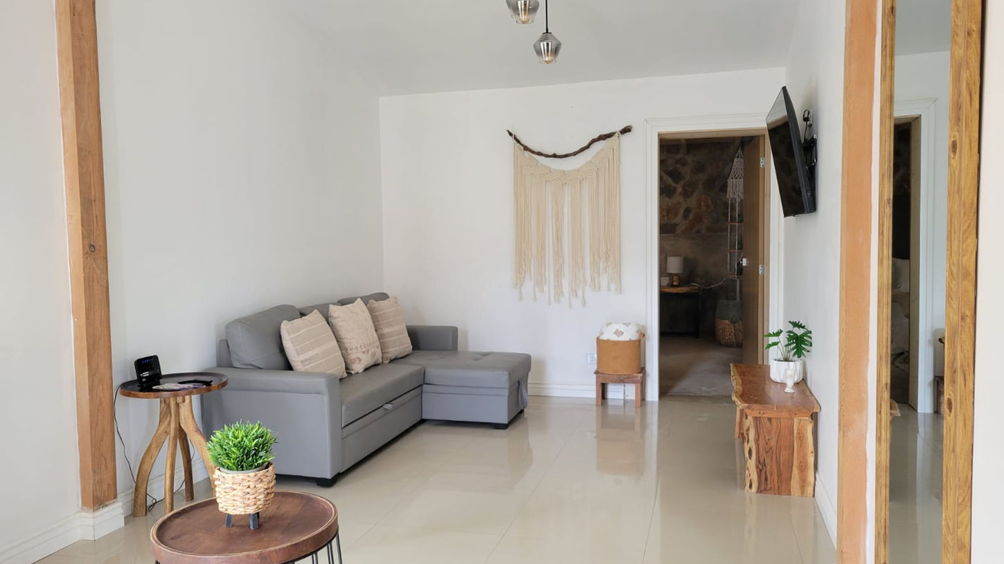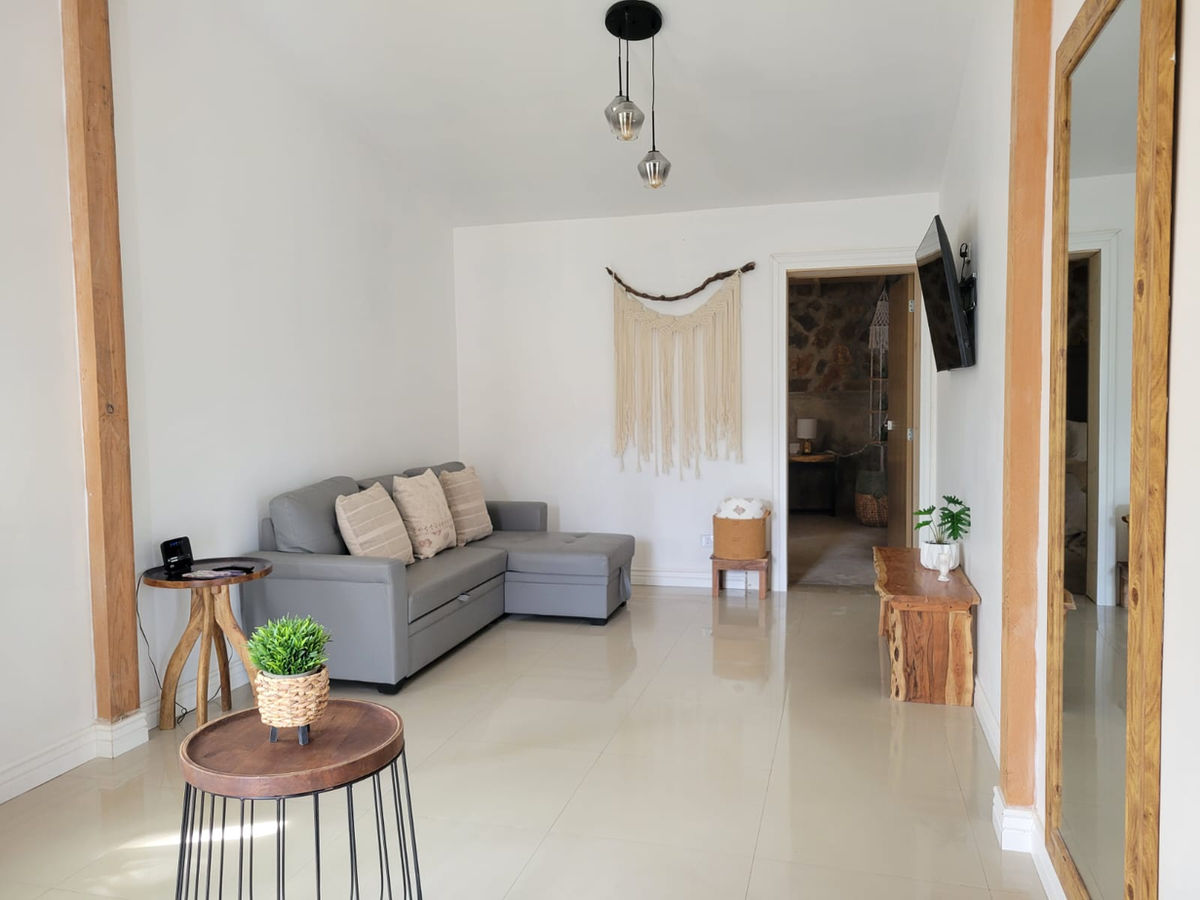 Cuenta con dos recámaras, dos baños, sala con tv con netflix, además de cocina equipada con barra, ideal para una divertida convivencia.
